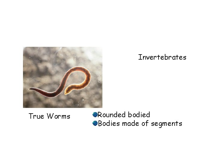 Invertebrates True Worms Rounded bodied Bodies made of segments