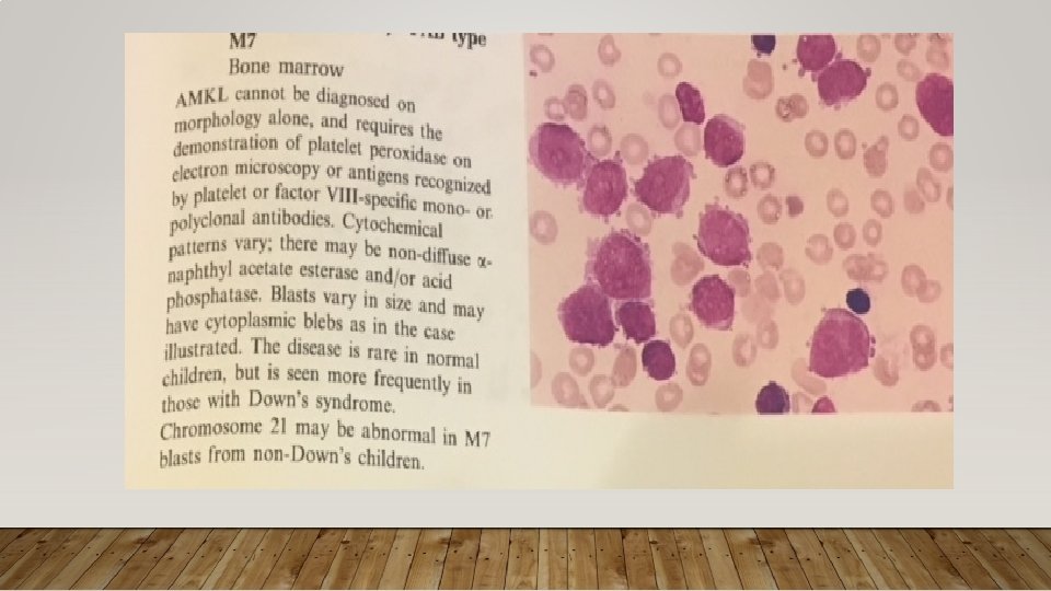 MYELOID PROLIFERATIONS OF DOWN SYNDROME • The myeloid proliferations of Down syndrome include transient abnormal myelopoiesis (TAM) and myeloid leukemia associated with Down syndrome. • Both are usually megakaryoblastic proliferations, with TAM occurring at birth or within days of birth and resolving in 1 to 2 months and myeloid leukemia occurring later, but usually in the first 3 years of life with or without prior TAM and persisting if not treated. • The myeloid neoplasms of Down syndrome have a similar behavior that is independent of blast cell count and these are not subclassified into MDS or AML. • Both TAM and myeloid leukemia associated with Down syndrome are characterized by GATA 1 mutations and mutations of the JAK-STAT pathway, with additional mutations identified in the myeloid leukemia cases.