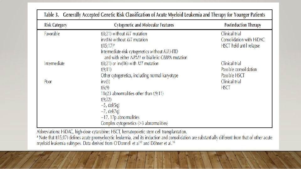 REFERENCES • 1. Bennett JM, Catovsky D, Daniel MT, et al. Proposals for the classification of the acute leukaemias: French-American-British (FAB) co-operative group. Br J Haematol. 1976; 33(4): 451– 458. • 2. Speck NA, Gilliland DG. Core-binding factors in haematopoiesis and leukaemia. Nat Rev Cancer. 2002; 2(7): 502– 513. • 3. Balgobind BV, Raimondi SC, Harbott J, et al. Novel prognostic subgroups in childhood 11 q 23/MLL-rearranged acute myeloid leukemia: results of an international retrospective study. Blood. 2009; 114(12): 2489– 2496. • 4. Grimwade D, Hills RK, Moorman AV, et al. Refinement of cytogenetic classification in acute myeloid leukemia: determination of prognostic significance of rare recurring chromosomal abnormalities among 5876 younger adult patients treated in the United Kingdom Medical Research Council trials. Blood. 2010; 116(3): 354– 365.