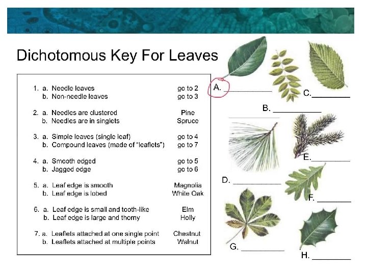 DICHOTOMOUS KEYS • Apply and design a key for a group of up to eight organisms • Keys are most commonly used to identify plants, insects, and birds. • You need to be able to construct a dichotomous key on page. 265