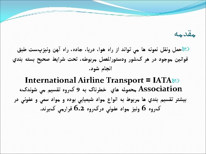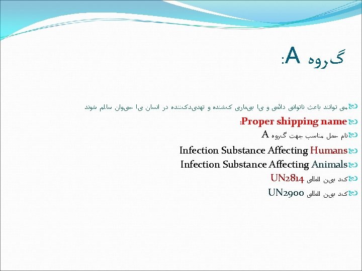 : ﻣﻮﺍﺩ ﺧﻄﺮﻧﺎﻙ ﻣﺘﻔﺮﻗﻪ Class 9: Different dangerous substances Ø Genetically modified microorganisms and organisms (not classified under 6. 2) (UN 3245)