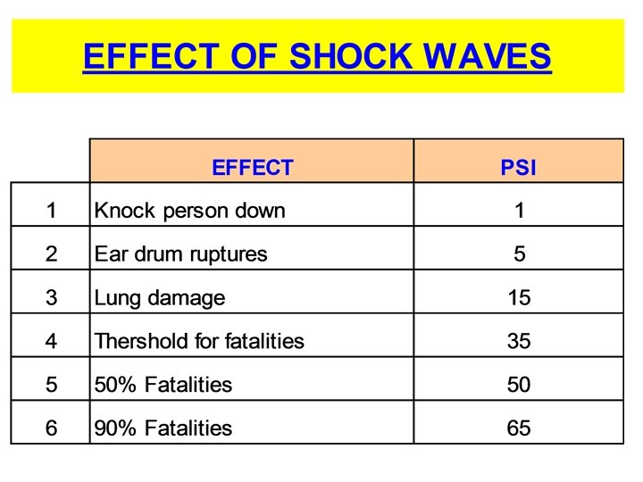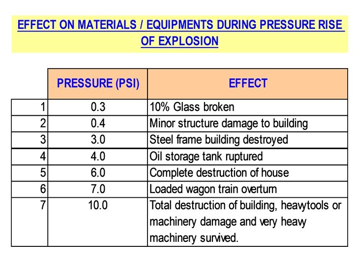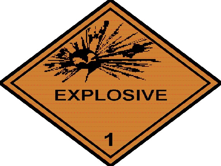1. Explosives : 1. 1 : Explosives with a mass explosion hazard 1. 2 : Explosives with a projection hazard 1. 3 : Explosives with predominantly a fire hazard 1. 4 : Explosives with no significant blast hazard 1. 5 : Very Insensitive explosive , blasting agent 1. 6 : Extremely insensitive detonating substances Detonate : Supersonic Speed : >1100 feet / Second TNT has detonation : 22, 600 feet / Second