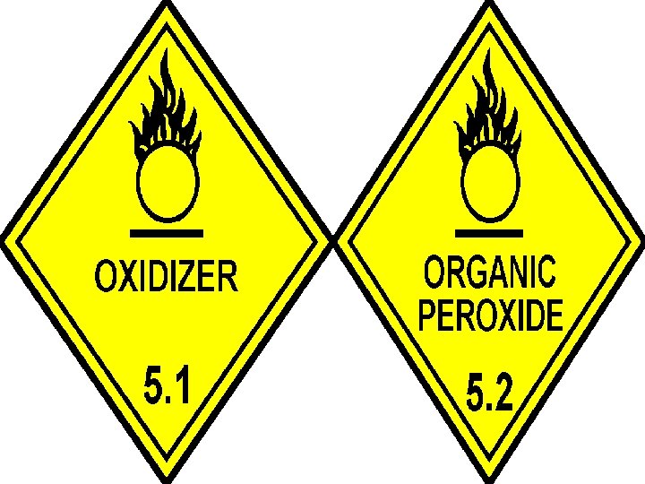 • 5. 1 : - Oxidizing substance [substances which while themselves not necessarily combustible may generally by yielding oxygen, cause or contribute to the combustion of other materials. ] • 5. 2: - Organic peroxides [organic chemicals which contain O – O structure and may be considered derivatives of hydrogen peroxide. Organic peroxides are thermally unstable and may undergo exothermic self sustaining decomposition causing rapid burning and / or explosion. They may also be sensitive to impact or friction or may react dangerously with other substances or may cause damage to eyes. ]