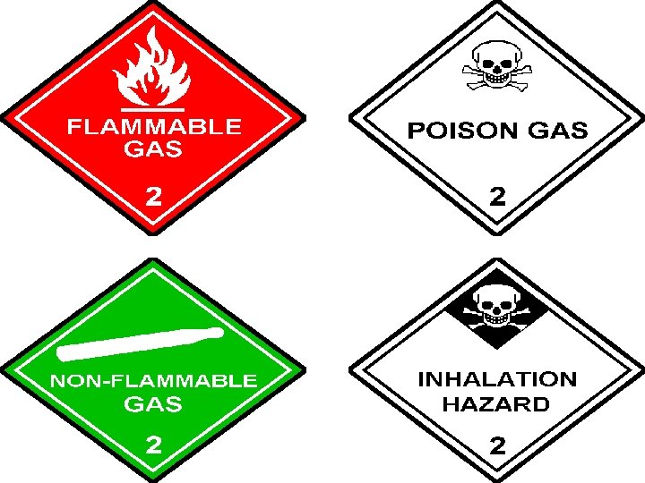 2. COMPRESSED GASES: Non Flammable Gases : • Nitrogen Flammable Gases : • LPG • Acetylene • Hydrogen Toxic Gases : • Chlorine • Phosgene