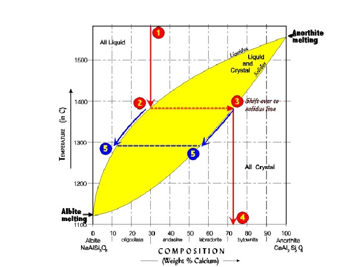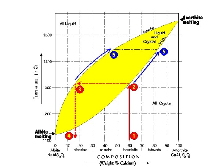 1. Partial Melting ~1200°C Olivine Augite Bowen’s Reaction Series Plagioclase feldspar (Mg Fe) Si. O 2 Ca Mg Fe Si. O 2 Hornblende Plagioclase feldspar Ca Mg Si. O 2 Biotite mica Fe Mg K Al Si. O 2 Orthoclase feldspar Muscovite mica ~600°C Ca Al Si. O 2 Quartz Si. O 2 K Al Si. O 2 Na Al Si. O 2