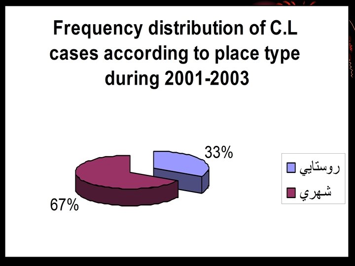 Disturbing increase in the number of C. L. cases in several area In Brazil : 1998; 21, 800 cases, 2003; 60, 000 cases In Afghanistan : 1994; 14, 200 cases, 2002; 67, 500 cases In Syria : 1998; 3900 cases, 2002; 6, 275 cases Related factors: - Economic development Behavioural and enviromental changes including : development of new settlements, deforestatio, massive migration from rural to urban area, fast and unplaned urbanization, ………