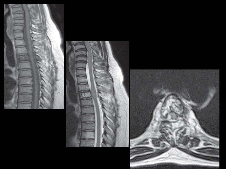 � Metastases to spine generally present as T 1 -hypointense and T 2 - hyperintense lesions that replace normal marrow. � Most metastases enhance. � MRI may be helpful to differentiate between an osteoporotic and a neoplastic compression fracture.