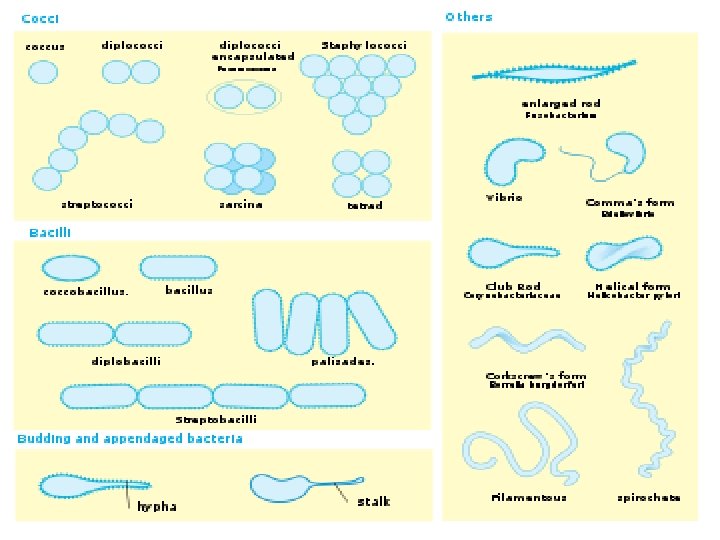 FYI - Bacteria Shapes Diplo. Groups of two Streptochains Staphylo. Grapelike clusters Coccus – round Bacillus – rod Sprillum – spiral
