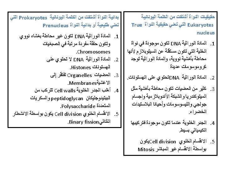 Prokaryotes: (from the Greek word meaning prenucleus)