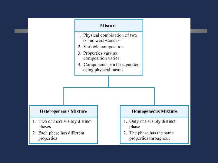 C. Mixtures ö Variable combination of 2 or more pure substances. Heterogeneous Homogeneous