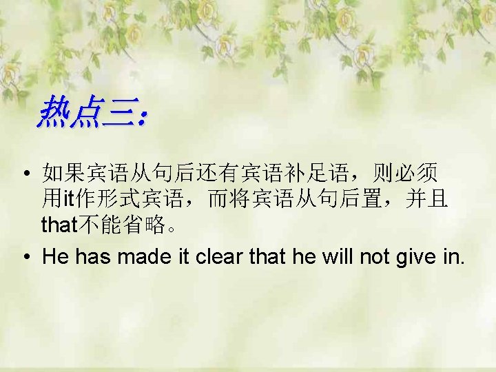 as if it is going to rain • It seems ___________. • 看起来要下雨了。 • The reason why he didn’t come is _________. that he was ill • 他病了。 because he was ill • =It is ________.