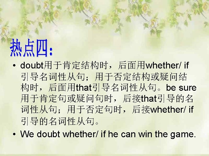• The news ____ that we won the competition is very encouraging. • I have no idea ____ what has happened to him. whether he will • There is some doubt ____ come. • There arose the question where _____ we could get the money.