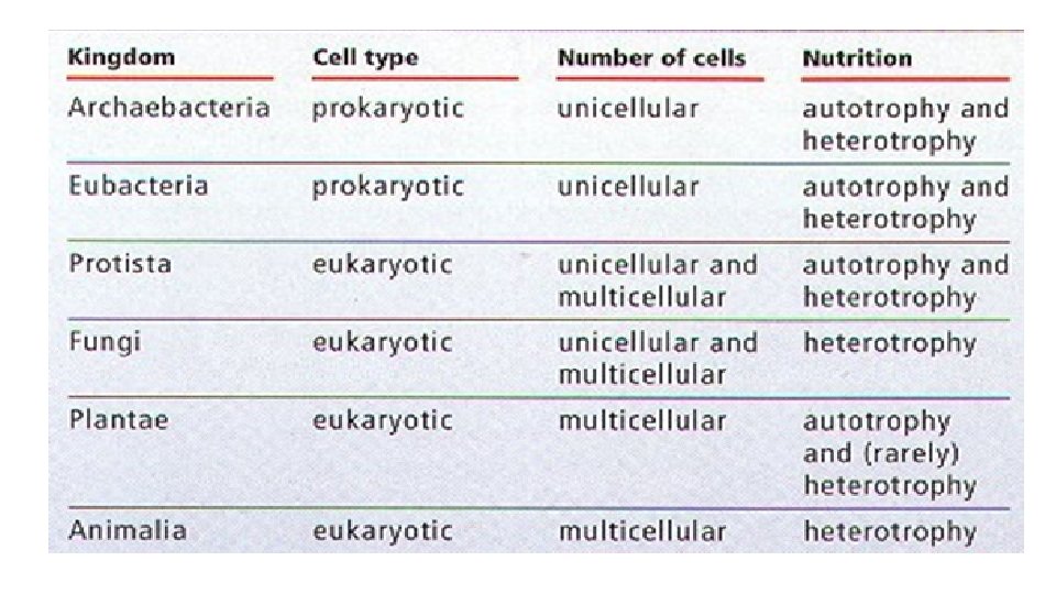 Biological Kingdoms Five kingdom system: Monera Protista Plantae Fungi Animalia Six kingdom system: Eubacteria Archaebacteria Protista Three domain system: Eubacteria E Archaebacteria U K A R Y A Eight kingdom system: Eubacteria Archaebacteria Archezoa Chromista Protista Plantae Fungi Animalia