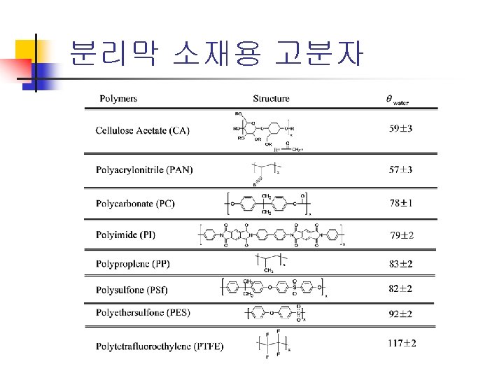 Membrane Morphology ; cosolvent effect GBL/NMP: 100/0 40/60 80/20 20/80 60/40 0/100 - Sponge-like finger-like as NMP content increases - Heat of mixing effect is clear 1 -methyl-2 -pyrrolidinone (NMP) g-butyrolactone (GBL)