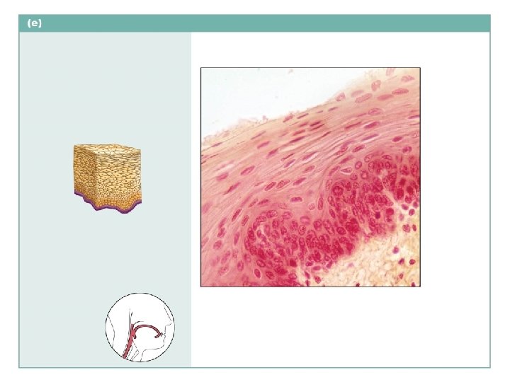 Stratified squamous epithelium Description: Thick membrane composed of several cell layers; basal cells are cuboidal or columnar and metabolically active; surface cells are flattened (squamous); in the keratinized type, the surface cells are full of keratin and dead; basal cells are active in mitosis and produce the cells of the more superficial layers. Stratified squamous epithelium Function: Protects underlying tissues in areas subjected to abrasion. Nuclei Basement membrane Location: Nonkeratinized type forms the moist linings of the esophagus, mouth, and vagina; keratinized variety forms the epidermis of the skin, a dry membrane. Connective tissue Photomicrograph: Stratified squamous epithelium lining the esophagus (280 ).