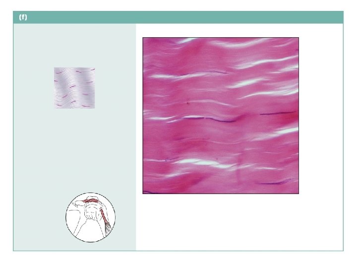dense regular connective tissue Description: Primarily parallel collagen fibers; a few elastic fibers; major cell type is the fibroblast. Collagen fibers Nuclei of fibroblasts Function: Attaches muscles to bones or to muscles; attaches bones to bones; withstands great tensile stress when pulling force is applied in one direction. Location: Tendons, most ligaments, aponeuroses. Shoulder joint Ligament Tendon Photomicrograph: Dense regular connective tissue from a tendon (425 ).