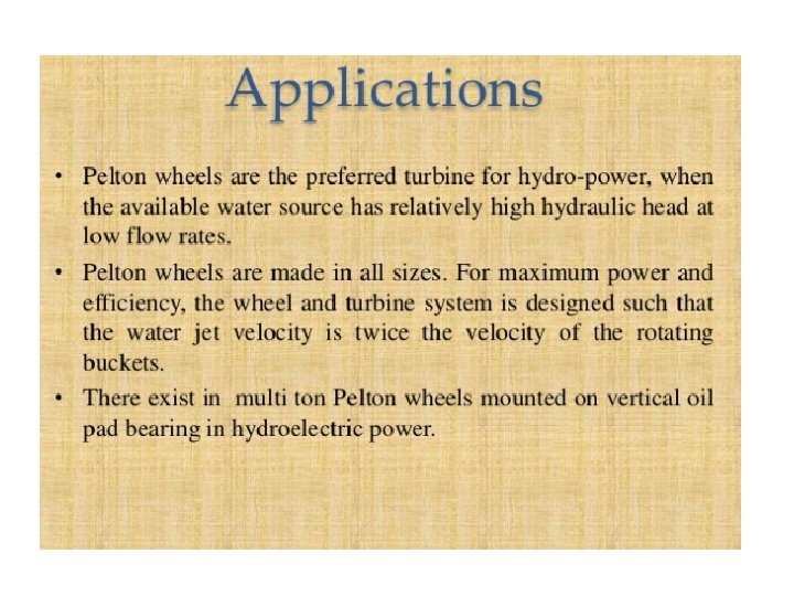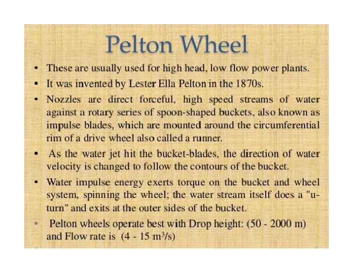 • Impulse Turbines: • An impulse turbine has fixed nozzles that orient the steam flow into high speed jets. • These jets contain significant kinetic energy, which the rotor blades, shaped like buckets, convert into shaft rotation as the steam jet changes direction. • A pressure drop occurs across only the stationary blades, with a net increase Î Disadvantages: 1. velocity of the wheel is too, high (25000 to 30000 r p m. ) for practical purposes. 2. loss of kinetic energy. In an actual turbine this loss is 10% to 12%.