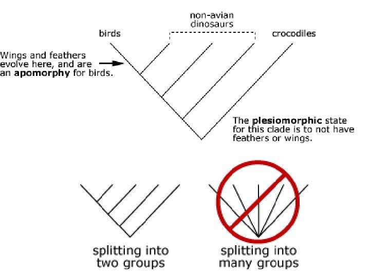 What are Cladistics? • Using derived characteristics of an organism to establish evolutionary relationships. • Derived characteristics is a feature that only a particular group of organisms possesses. – Feathers, hair, roots, etc.