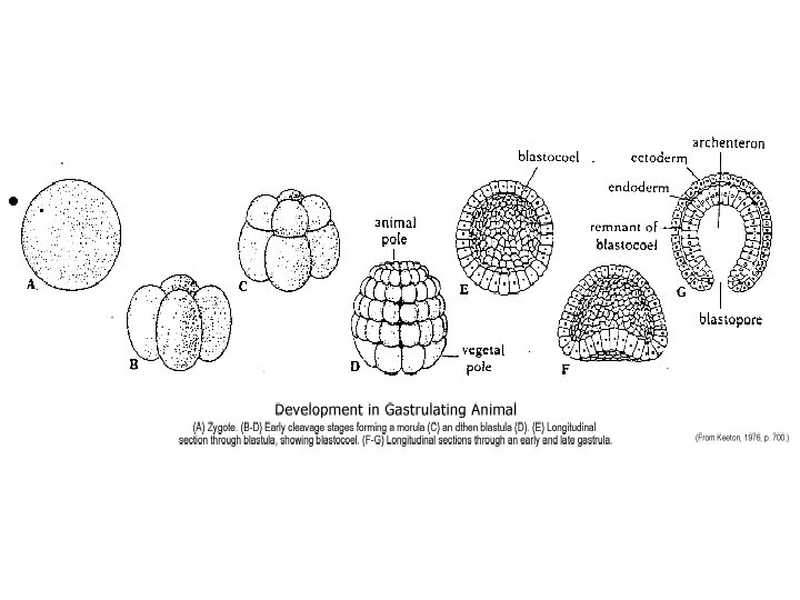 Patterns of Embryological Development • Zygote: fertilized egg • Blastula: hollow ball of cells • Gastrula: caved in ball of cells , the opening becomes the mouth or anus of an organism. – Insects: Mouth- Protosome – Echinoderms: Anus-Deuterosome – Which one are you?