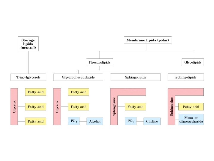Glicolipidi : 1. diacilgliceroli 2. sfingoglicolipidi Presenti nelle piante e nelle cellule nervose dei vertebrati
