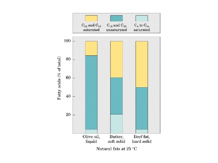 Acidi grassi saturi possono impacchettarsi strettamente → p. f. più alti, consistenza cerosa