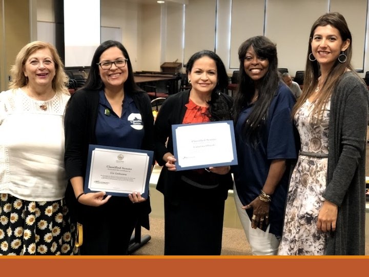 Past Recognition Award Recipients Last 10 years 2007 – 2008: Tish Ball (Fall) & Lisa Gomber (Spring) 2008 – 2009: Catherine Parks (Fall) & Rena Negrete (Spring) 2009 – 2010: Greg Menchaca (Fall) & Juan Cuevas (Spring) 2010 – 2011: Carol Rehfield (Fall) & Cynthia Sands (Spring) 2011 – 2012: Linda Millikan (Fall) & Darin Acierno (Spring) 2012 – 2013: Layna Santana (Fall) & Sandy March (Spring) 2013 – 2014: Efrain Villanueva (Fall) & Lou Kavanaugh (Spring) 2014 – 2015: Les-Sie’ Crockrom (Fall) & Jim Mc. Kamy (Spring) 2015 – 2016: Charlesworth Fraser (Fall) & Linda Millikan (Spring) 2016 – 2017: David Cook (Fall) & Amy Shrack (Spring) 2017 – 2018: Les-Sie’ Crockrom (Fall) & Olivia Perez (Spring)