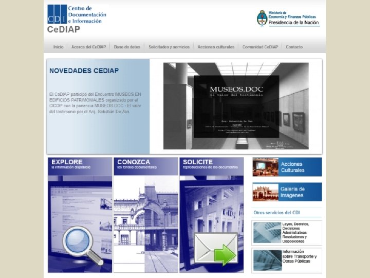 Evolución del Proyecto Ce. DIAP Diseño de un nuevo producto: un proyecto que contiene al anterior. …. UN PORTAL ABIERTO Y DINAMICO contenidos vinculados al patrimonio documental de arquitectura pública argentina, para mantener actualizada la información referida a las obras de arquitectura realizadas por el Estado en todo el país mediante la implementación de un sistema federal de acceso a la información. . .