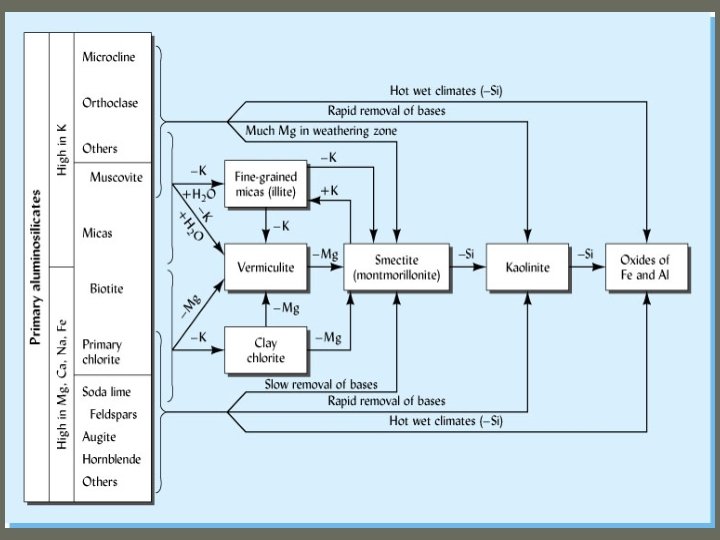 What determines clay minerals in a given soil? ü Usually a mixture ü Climate ü Parent material ü Degree of weathering