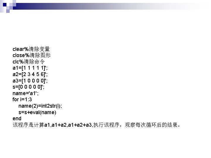 ![观察比较三者的区别 for i=1: 4 if i==2 %continue %break return end disp(['i=', num 2 str(i)]) 观察比较三者的区别 for i=1: 4 if i==2 %continue %break return end disp(['i=', num 2 str(i)])](https://slidetodoc.com/presentation_image_h2/75f0342d7fc3bee27e20be656103a196/image-29.jpg)