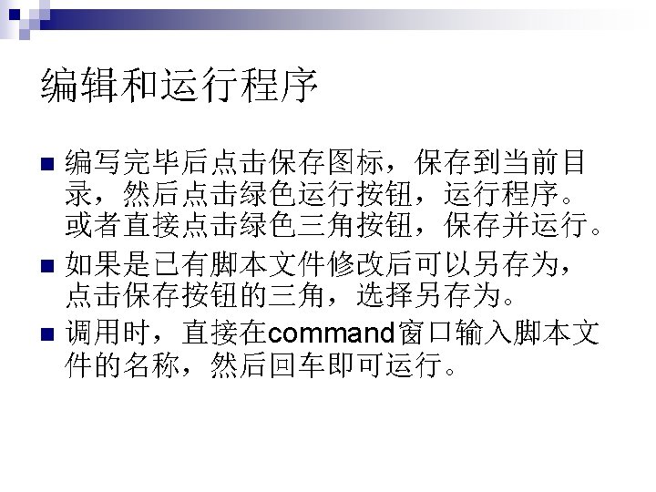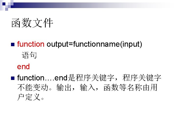 ![函数的输出可以有多个,例如motion function [dist, vel, accel]=motion(t) accel=0. 5. *t; vel=accel. *t; dist=vel. *t; 函数的输出可以有多个,例如motion function [dist, vel, accel]=motion(t) accel=0. 5. *t; vel=accel. *t; dist=vel. *t;](https://slidetodoc.com/presentation_image_h2/75f0342d7fc3bee27e20be656103a196/image-40.jpg)