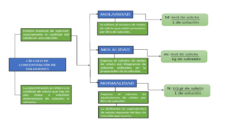 Relación entre Normalidad y Molaridad • Para una misma solución se cumple: • N = (M)(parámetro) • De donde: • N = Normalidad • M = Molaridad • Ejemplo: • Calcular la Normalidad de una solución de H 2 SO 4 0. 2 M N = (0. 2)(2) N= 4
