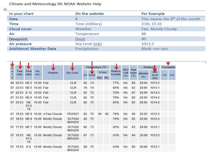 Materials and Procedures Use the National Weather Service site to choose a location for your hourly observations. http: //weather. noaa. gov/ All 24 hours are already recorded – you don’t have to do this yourself!!