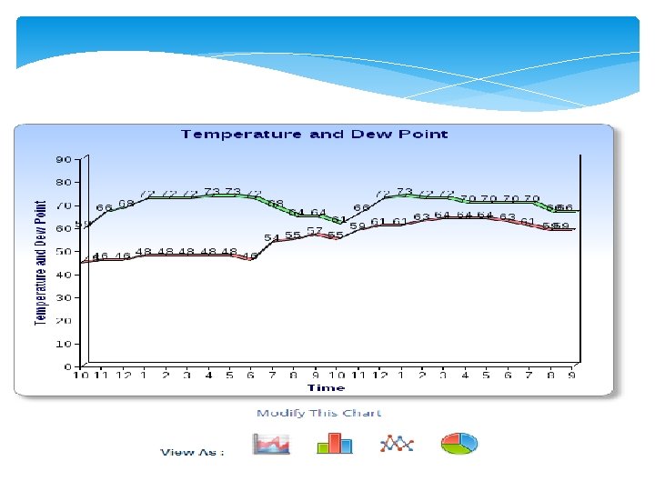 Dew point Temperature and Air Temperature Dew point is the temperature that the air is saturated with water vapor– think of humidity. High dew point temperatures – 70 and above – tend to be more humid, and can feel uncomfortable. If the dew point is high, there is a better chance there is fog, severe humidity, or even rain. When the air temperature is high, you sweat to cool down – if the dew point temperature is high, your sweat doesn’t evaporate, making you feel sticky and hot!