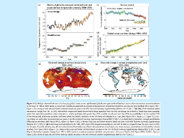 Observed changes in (a) global average surface temperature, (b) global average sea level from tide gauge (blue) and satellite (red) data and (c) Northern Hemisphere snow cover for March-April. All changes are relative to corresponding averages for the period 1961– 1990. Smoothed curves represent decadal average values while circles show yearly values. The shaded areas are the uncertainty intervals estimated from a comprehensive analysis of known uncertainties (a and b) and from the time series (c). {FAQ 3. 1, Figure 4. 2, Figure 5. 13} ENSC 425/625 UNBC 4