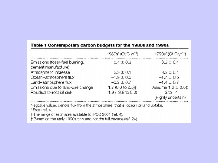 • Key Messages – Human activities (fossil fuel use and land-use) perturb the carbon cycle -increasing the atmospheric concentration of carbon dioxide – The current terrestrial carbon sink is caused by land management practices, higher carbon dioxide, nitrogen deposition and possibly recent changes in climate – This uptake by the terrestrial biosphere will not continue indefinitely. The question is when will this slow down, stop or even become a source? – Land management results in the sequestration of carbon in three main pools -- above and below ground biomass and soils – Monitoring systems can be put in place to monitor all three pools of carbon – Land management buys time to transform energy systems to lower GHG emitting systems, but will allow more fossil carbon to transferred to the more labile biological pools, hence avoiding a tonne of carbon emissions is better than creating a tonne of sinks