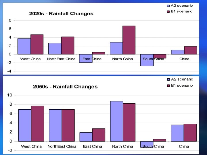 – Annual change in temperature and rainfall for China: 2020 s, 2050 s, and 2080 s – 17 GCMs from IPCC and PRECIS (A 2 emissions)