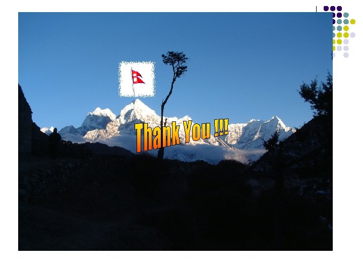 Climate Change Vulnerability!!! l l l Nepal’s vulnerability to Climate Change and Global Warming: l Fragile Mountain Ecosystem l Prone to Natural Disasters l Landlockedness l Poverty – additional cost for adaptation Major river systems are either glacial origin or in the impact zones Climate change major challenge to livelihood of people l Agro-based (monsoon based) economy