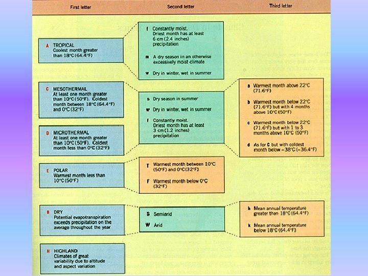 Interesting Notes • The USA has every type of climate (except Cw and Dw). They are like the Cf & Df climates except for a dry winter season instead of being humid all year long. • There are no D climates in the southern hemisphere – There is mostly ocean at the latitudes at which the D climates occur in the northern hemisphere (massive land areas in these latitudes in the northern hemisphere).