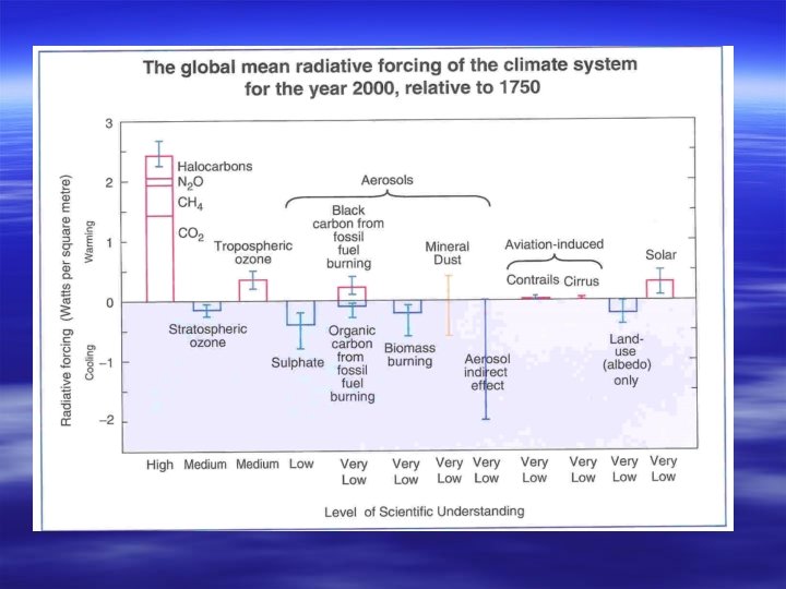 § The source of the data is the Intergovernmental Panel on Climate Change (IPCC) § Note that all but the possible change in solar output are anthropogenic § Volcanic activity is another natural but highly variable forcing.