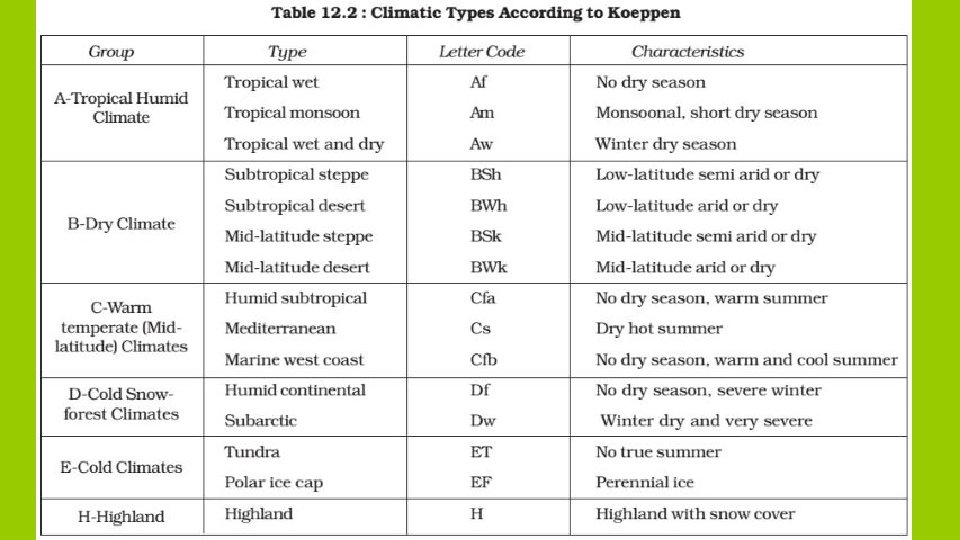 A. Climate is… -Def. = an area’s long-term pattern of weather. -2. Main characteristics: 1. Temperature 2. Precipitation (Don’t Write) It includes characteristics such as how hot summers are, how cold winters are, and how much precipitation falls at different times of year.