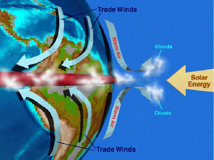 Non-rotating Earth heated uniformly at its Equator Circulation system not to scale! Mean radius of the earth: 6371 km Height of the troposphere: 0 -7 km at poles 20 km at Equator 90% of atmosphere is in the lowest 15 miles (24 km) 99% in lowest 30 miles (48 km)