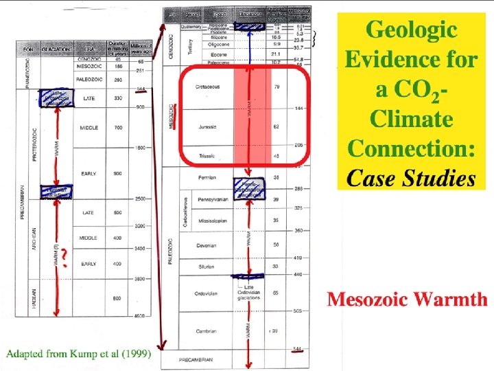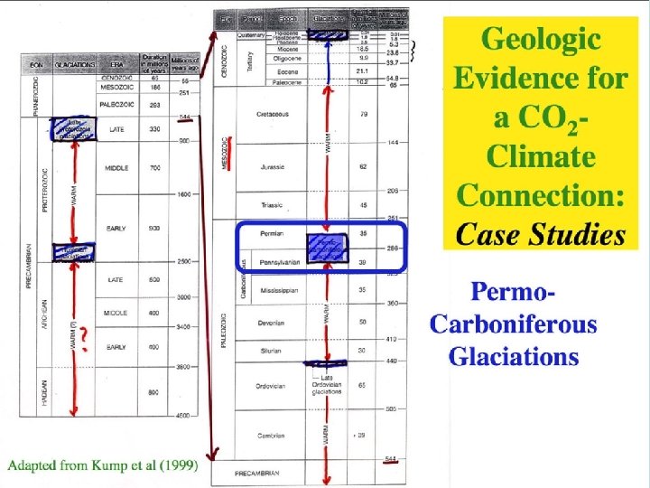 Geologic Evidence for a CO 2 Climate Connection: Case Studies Permo. Carboniferous Glaciations Mesozoic Warmth Adapted from Kump et al (1999) Cenozoic Cooling