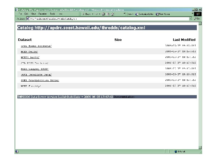 Authentication based access and IP based access outside IPRC network by authentication http: //user: passwd@apdrc 2. soest. hawaii. edu/dods/iprc_only/ inside IPRC network by IP address http: //apdrc 2. soest. hawaii. edu: 9090/dods/iprc_only