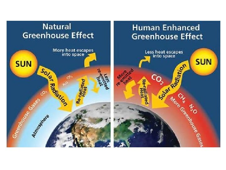 Causes of Climate Change • Human Factors: 1. Greenhouse Effect = gases in the atmosphere trap solar energy and keep the Earth warm; water vapor, carbon dioxide and methane. • Too much of these gases make the atmosphere warmer than needed = global warming. – Burning of fossil fuels add carbon dioxide to the air. 2. Ozone depletion = the loss of the protective ozone layer in the stratosphere that filters harmful UV radiation from the sun. • Chlorofluorocarbons, a group of chlorine compounds, were to blame for the breakdown of the ozone.
