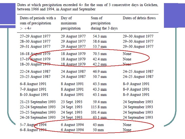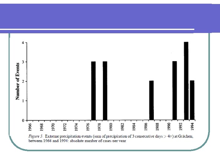 Statistical Analysis(6/6) Temperature factor: l Higher temperatures play a key role in the availability of sediments through glacier retreat and its impact on permafrost (Haeberli, 1993) l Borehole observations indicate an increase of permafrost temperatures during the last decadeat a rate of 0. 1 K/year l The study area revealed intense regressive erosion inside these scars due to the degradation of permafrost exposed to the open air (a retreat of about 1 meter was observed in some places) l. The snowmelt led to increase soil contains water