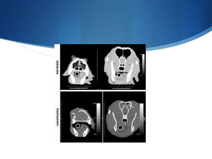 S L’esame delle prime vie nel cane e nel gatto è semplificato dalla capacità di apertura delle fauci S Ispezione SEMPRE anche del cavo orale S Ispezione Palpazione Percussione S Diagnostica per immagini (ENDOSCOPIA, RX, RMN) S L’endoscopia può essere eseguita con otoscopio o con fibroscopio o con video endoscopio. IMPORTANTE metodo semiologico (epistassi ecc. )