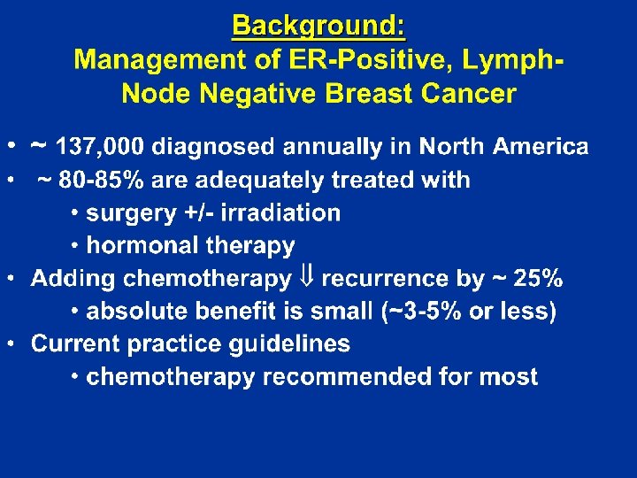 Systemic Therapy - Chemotherapy • Overall survival improvement in clinical trials both for standard and newer treatments • Choice – for patients, for physicians (anthracycline +/- taxanes) • Better decision making aids – www. adjuvantonline. com • Molecular profiles – Oncotype Dx, Mammo. Print • Improved supportive care