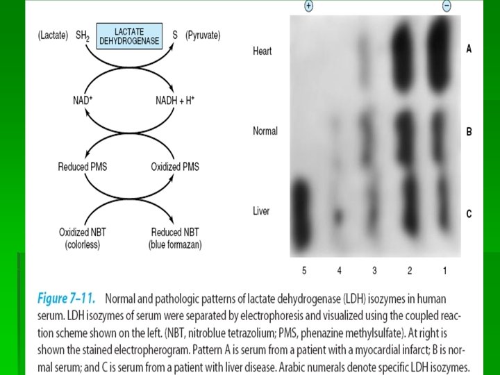 § The iso-enzymes are usually separated by cellulose acetate electrophoresis at p. H 8. 6. § Lactate dehydrogenase isoenzymes (as percentage of total): § LDH 1 14 -26 % § LDH 2 29 -39 % § LDH 3 20 -26 % § LDH 4 8 -16% § LDH 5 6 -16 %