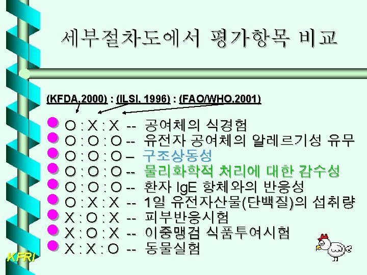 Bioinformatics Databases Allergens - Database of known allergens (752+ AA sequences, >170 proteins) - relevant matches > 7 contiguous identical AA - or significant overall similarity (“E - score”) - to identify potentially cross-reactive proteins Toxins - Database of known protein toxins - currently contains 2700 AA Sequences - overall matches & specific structures - to identify potentially toxic proteins Total - Total sequences: 3. 1 x 105 known genes Evaluate results, determine if specific tests are needed.