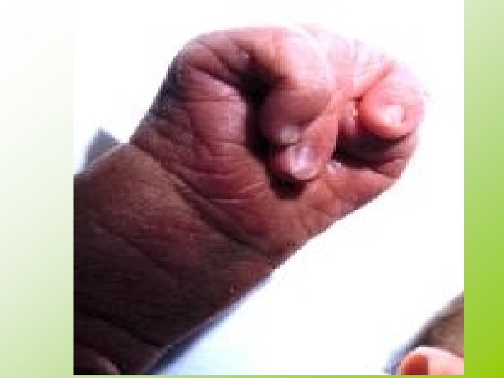 Edwards syndrome • • • 1: 5000 IUGR, hyopotrophie microcephalie dolichocephalie Cleft palate Down
